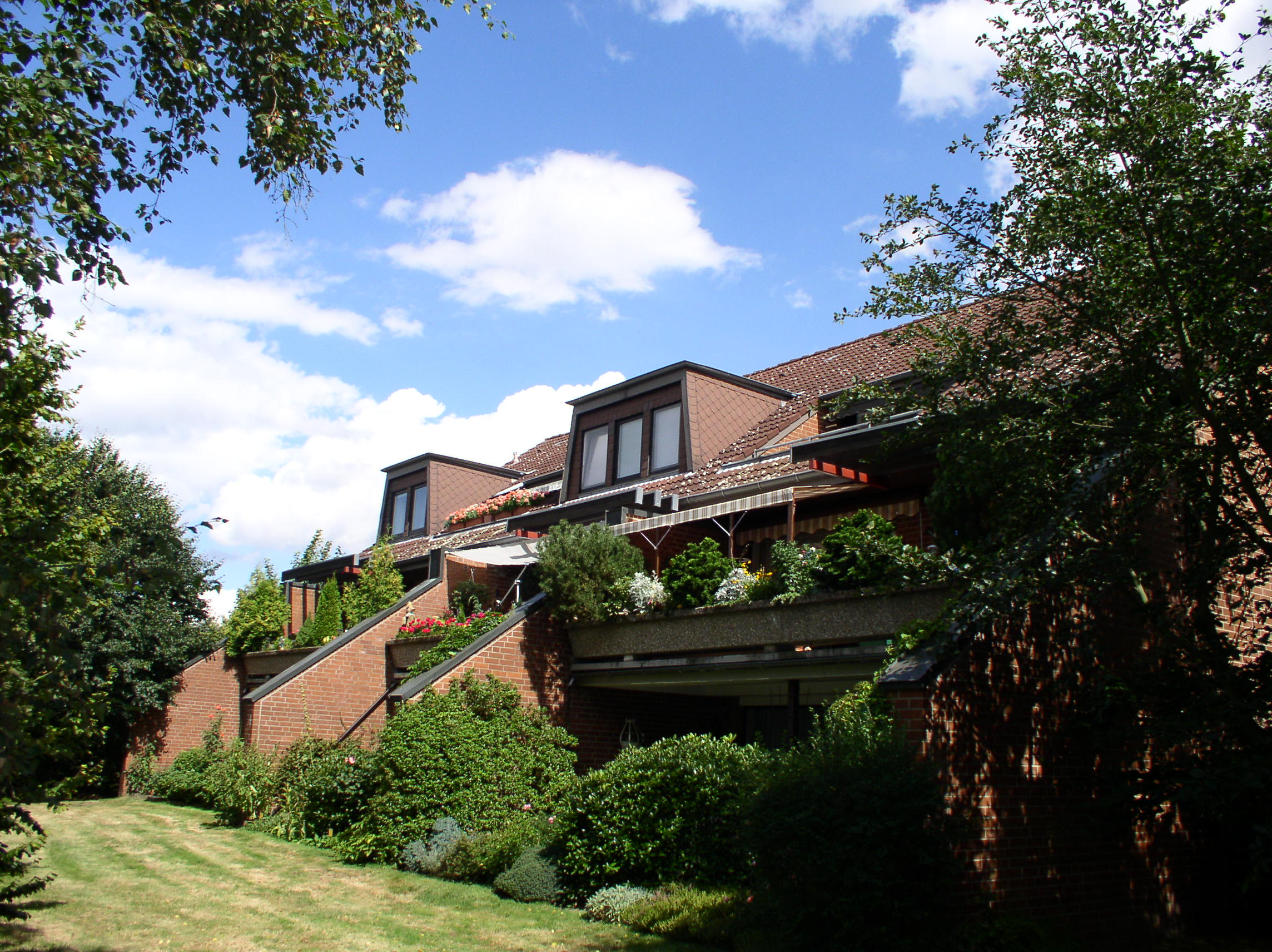 Ruhige gepflegte Wohnanlage mit parkartigem Garten. Diese 1979 erbaute zweigeschossige Mehrfamilienhäuser sind auf einem großen Grundstück zwischen „Rosengarten“ und „Krummer Arm“ gelegen. Große eigene Parkplätze sind vorhanden.